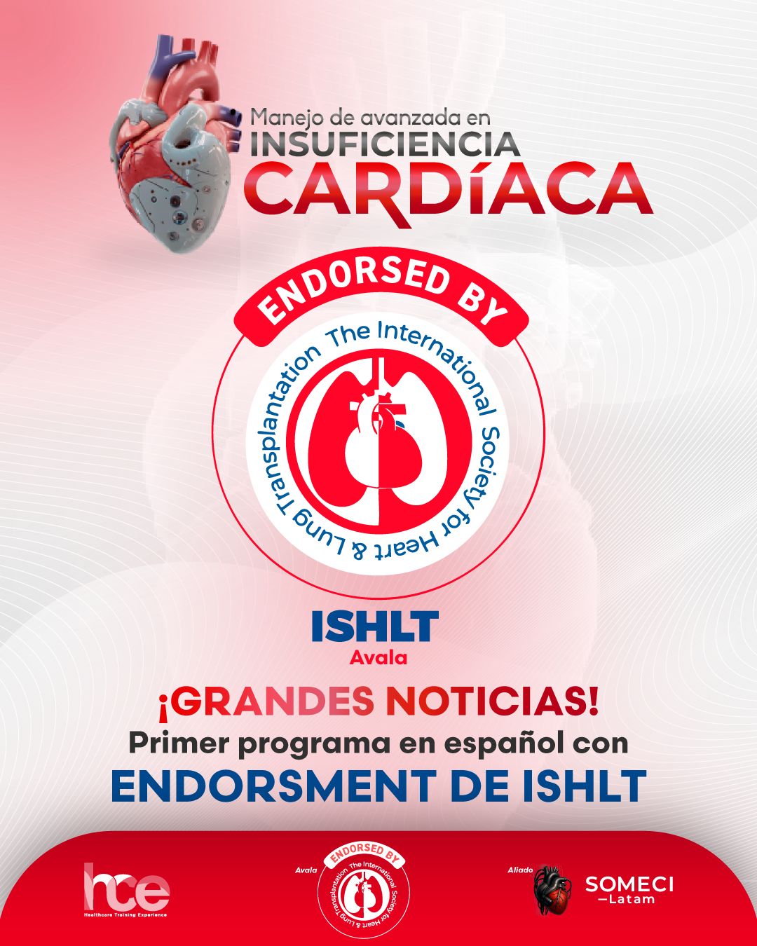 El Diploma en Manejo de la Insuficiencia Cardíaca Avanzada en sociedad con HCE, primer programa avalado por la ISHLT, es un programa de educación continua orientado a la formación integral del profesional de salud en todo el espectro de la falla cardíaca avanzada. Abarca desde la identificación y clasificación del paciente avanzado, la estratificación pronóstica y el manejo médico y hemodinámico especializado, hasta la implementación de terapias de soporte circulatorio mecánico de corta y larga duración, incluyendo trasplante cardíaco, asistencia ventricular (LVAD) y manejo paliativo. El curso combina una metodología interactiva con simuladores clínicos, tutorías personalizadas y evaluaciones continuas, reforzando la toma de decisiones clínicas y la aplicación práctica de los conocimientos en escenarios reales.